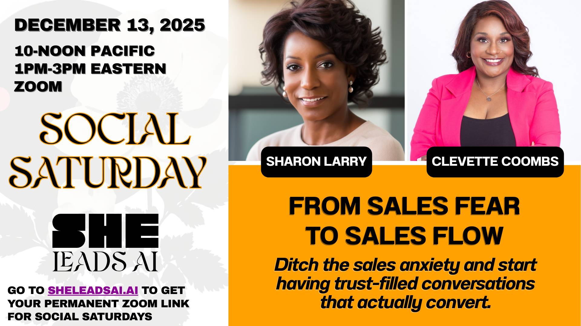 She Leads AI Social Saturday: From Sales Fear to Sales Flow with Sharon Larry and Clevette Coombs